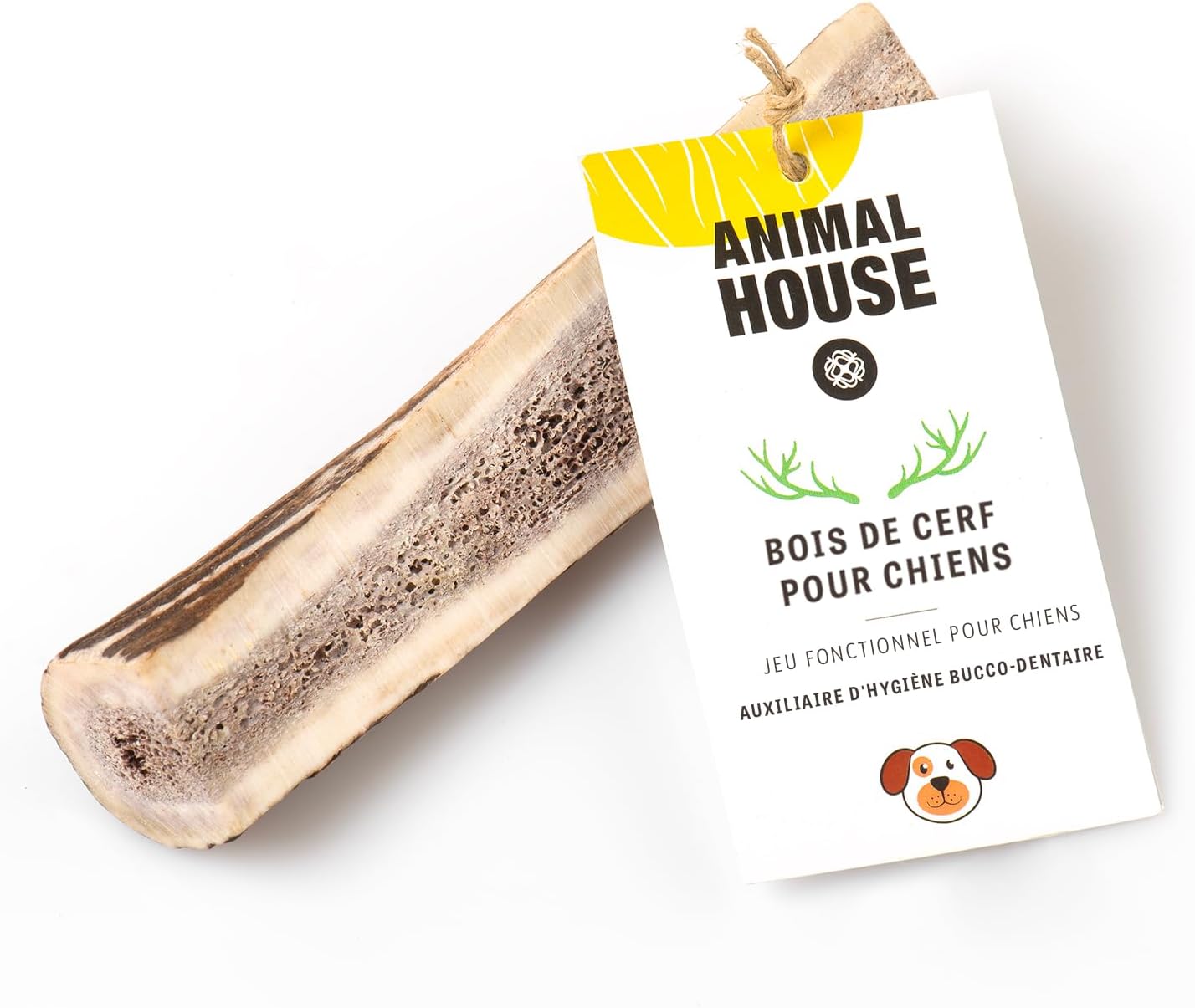 Le bois de cerf est conçu pour s’user lentement. Si un petit morceau se détache, il faut le retirer immédiatement pour éviter tout risque d’ingestion.